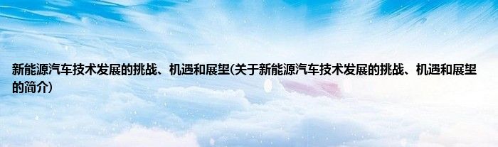 本文关于新能源汽车技术发展的挑战、机遇和展望的简介就讲解完毕,希望对大家有所帮助。