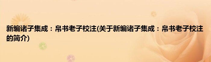 本文关于新编诸子集成:帛书老子校注的简介就讲解完毕,希望对大家有所帮助。