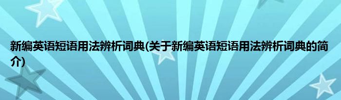 本文关于新编英语短语用法辨析词典的简介就讲解完毕,希望对大家有所帮助。