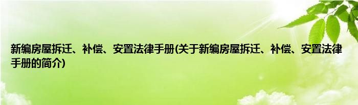 大家好,新编房屋拆迁、补偿、安置法律手册,关于新编房屋拆迁、补偿、安置法律手册的简介很多人还不知道,现在让我们一起来看看吧!