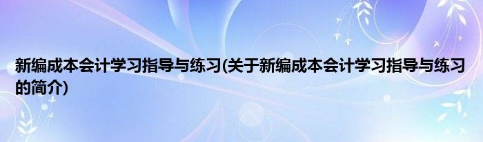 大家好,新编成本会计学习指导与练习,关于新编成本会计学习指导与练习的简介很多人还不知道,现在让我们一起来看看吧!