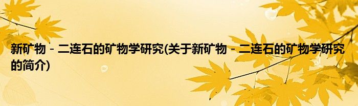 本文关于新矿物-二连石的矿物学研究的简介就讲解完毕,希望对大家有所帮助。