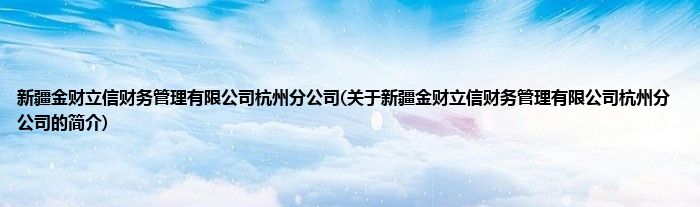 新疆金财立信财务管理有限公司杭州分公司(关于新疆金财立信财务管理有限公司杭州分公...