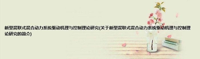 本文关于新型混联式混合动力系统驱动机理与控制理论研究的简介就讲解完毕,希望对大家有所帮助。