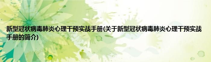 本文关于新型冠状病毒肺炎心理干预实战手册的简介就讲解完毕,希望对大家有所帮助。