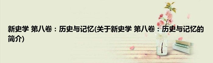 大家好,新史学 第八卷:历史与记忆,关于新史学 第八卷:历史与记忆的简介很多人还不知道,现在让我们一起来看看吧!