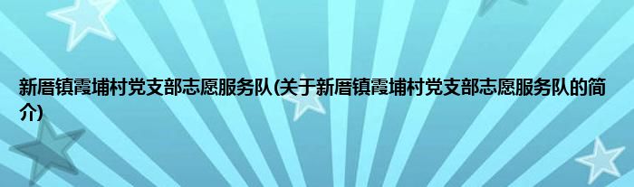 本文关于新厝镇霞埔村党支部志愿服务队的简介就讲解完毕,希望对大家有所帮助。