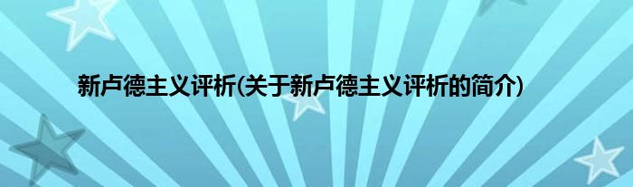 1、 《新卢德主义评析》是2008年12月1日东北大学出版社出版的图书。