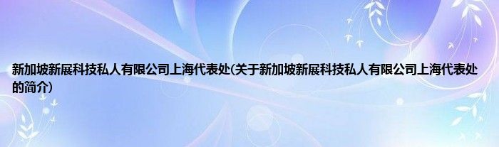 新加坡新展科技私人有限公司上海代表处(关于新加坡新展科技私人有限公司上海代表处的简介)