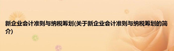 大家好,新企业会计准则与纳税筹划,关于新企业会计准则与纳税筹划的简介很多人还不知道,现在让我们一起来看看吧!