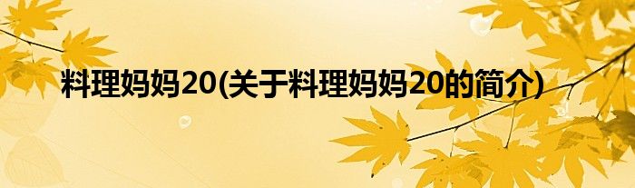 本文关于料理妈妈20的简介就讲解完毕,希望对大家有所帮助。