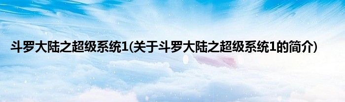 本文关于斗罗大陆之超级系统1的简介就讲解完毕,希望对大家有所帮助。