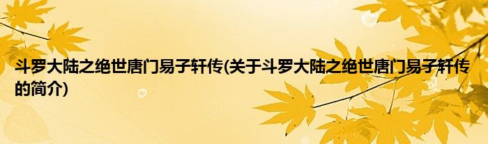 本文关于斗罗大陆之绝世唐门易子轩传的简介就讲解完毕,希望对大家有所帮助。