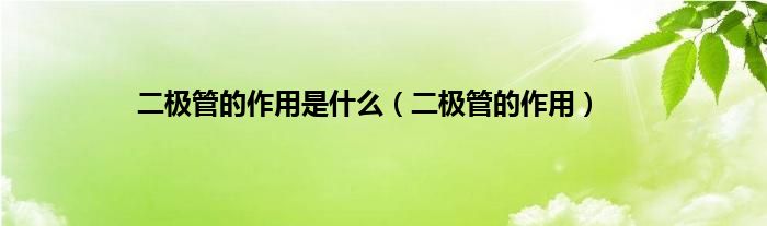 大家好,精选小编来为大家解答以上问题。二极管的作用是什么,二极管的作用很多人还不知道,现在让我们一起来看看吧!
