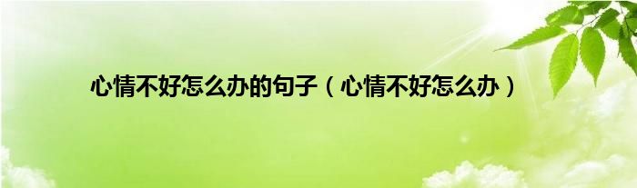 大家好,精选小编来为大家解答以上问题。心情不好怎么办的句子,心情不好怎么办很多人还不知道,现在让我们一起来看看吧!