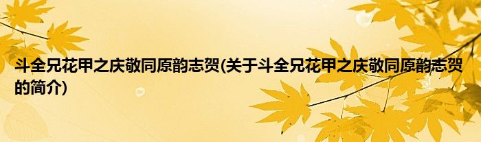 本文关于斗全兄花甲之庆敬同原韵志贺的简介就讲解完毕,希望对大家有所帮助。