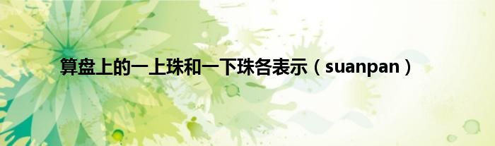 大家好,精选小编来为大家解答以上问题。算盘上的一上珠和一下珠各表示,suanpan很多人还不知道,现在让我们一起来看看吧!