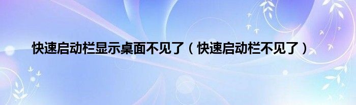 大家好,精选小编来为大家解答以上问题。快速启动栏显示桌面不见了,快速启动栏不见了很多人还不知道,现在让我们一起来看看吧!
