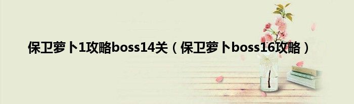 大家好,精选小编来为大家解答以上问题。保卫萝卜1攻略boss14关,保卫萝卜boss16攻略很多人还不知道,现在让我们一起来看看吧!