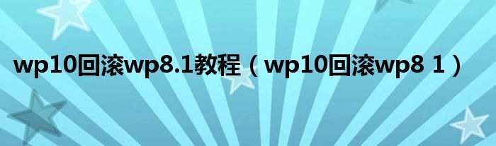 大家好,精选小编来为大家解答以上问题。wp10回滚wp8.1教程,wp10回滚wp8 1很多人还不知道,现在让我们一起来看看吧!