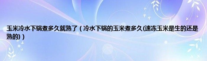 玉米冷水下锅煮多久就熟了(冷水下锅的玉米煮多久(速冻玉米是生的还是熟的))
