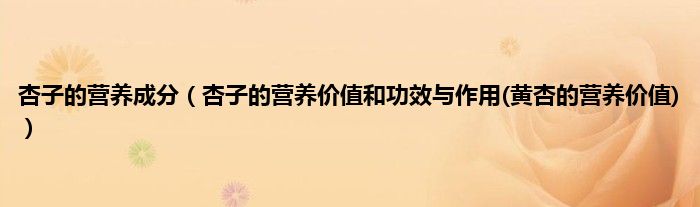 大家好,小科来为大家解答以上问题。杏子的营养成分,杏子的营养价值和功效与作用(黄杏的营养价值)很多人还不知道,现在让我们一起来看看吧!