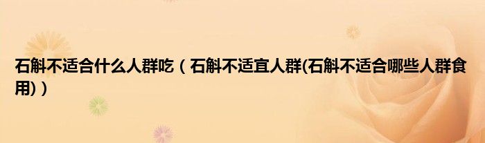 大家好,小科来为大家解答以上问题。石斛不适合什么人群吃,石斛不适宜人群(石斛不适合哪些人群食用)很多人还不知道,现在让我们一起来看看吧!