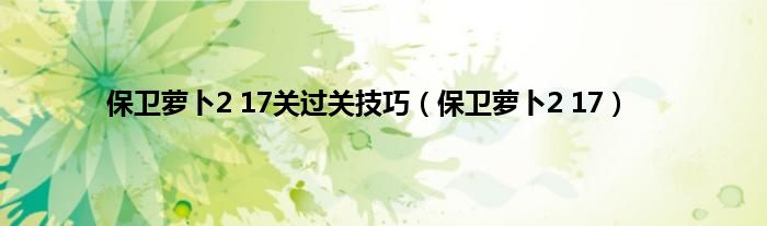 大家好,精选小编来为大家解答以上问题。保卫萝卜2 17关过关技巧,保卫萝卜2 17很多人还不知道,现在让我们一起来看看吧!