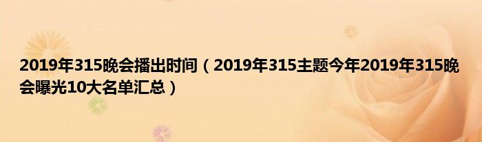 大家好,小科来为大家解答以上问题。2019年315晚会播出时间,2019年315主题今年2019年315晚会曝光10大名单汇总很多人还不知道,现在让我们一起来看看吧!