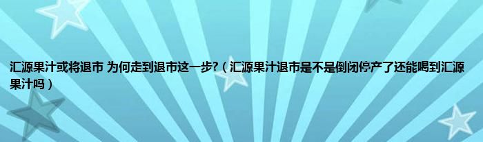 大家好,小科来为大家解答以上问题。汇源果汁或将退市 为何走到退市这一步?,汇源果汁退市是不是倒闭停产了还能喝到汇源果汁吗很多人还不知道,现在让我们一起来看看吧!