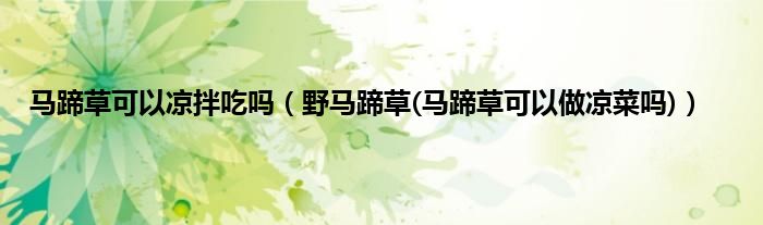 大家好,小科来为大家解答以上问题。马蹄草可以凉拌吃吗,野马蹄草(马蹄草可以做凉菜吗)很多人还不知道,现在让我们一起来看看吧!