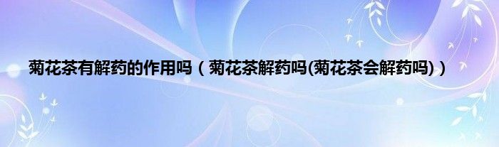 大家好,小科来为大家解答以上问题。菊花茶有解药的作用吗,菊花茶解药吗(菊花茶会解药吗)很多人还不知道,现在让我们一起来看看吧!