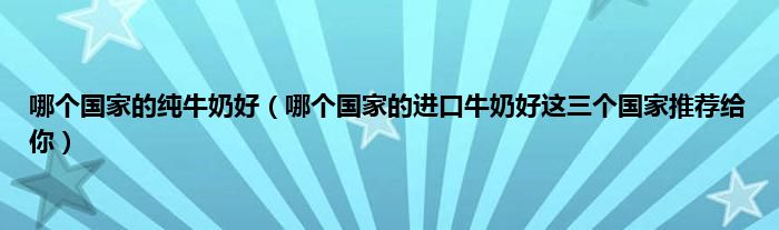 大家好,小科来为大家解答以上问题。哪个国家的纯牛奶好,哪个国家的进口牛奶好这三个国家推荐给你很多人还不知道,现在让我们一起来看看吧!