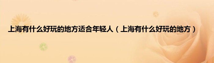 大家好,精选小编来为大家解答以上问题。上海有什么好玩的地方适合年轻人,上海有什么好玩的地方很多人还不知道,现在让我们一起来看看吧!