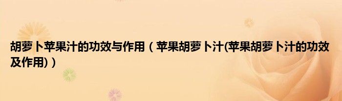 大家好,小科来为大家解答以上问题。胡萝卜苹果汁的功效与作用,苹果胡萝卜汁(苹果胡萝卜汁的功效及作用)很多人还不知道,现在让我们一起来看看吧!