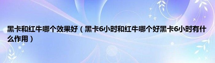 以上“黑卡6小时和红牛哪个好,黑卡6小时有什么作用"为大家介绍到这里,希望对你有所帮助。