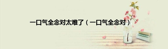 大家好,精选小编来为大家解答以上问题。一口气全念对太难了,一口气全念对很多人还不知道,现在让我们一起来看看吧!