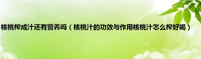 大家好,小科来为大家解答以上问题。核桃榨成汁还有营养吗,核桃汁的功效与作用核桃汁怎么榨好喝很多人还不知道,现在让我们一起来看看吧!