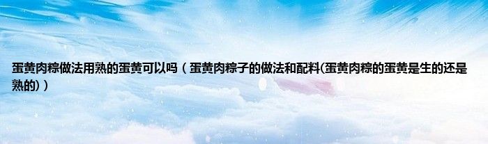 大家好,小科来为大家解答以上问题。蛋黄肉粽做法用熟的蛋黄可以吗,蛋黄肉粽子的做法和配料(蛋黄肉粽的蛋黄是生的还是熟的)很多人还不知道,现在让我们一起来看看吧!