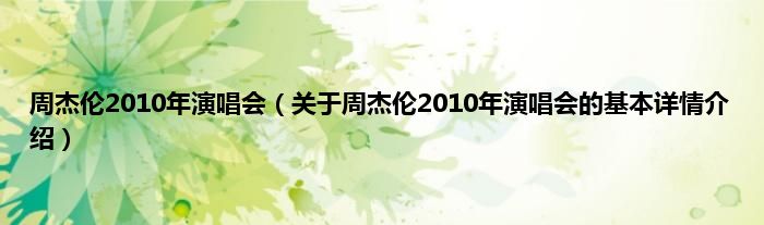 本文关于周杰伦2010年演唱会的基本详情介绍就讲解完毕,希望对大家有所帮助。
