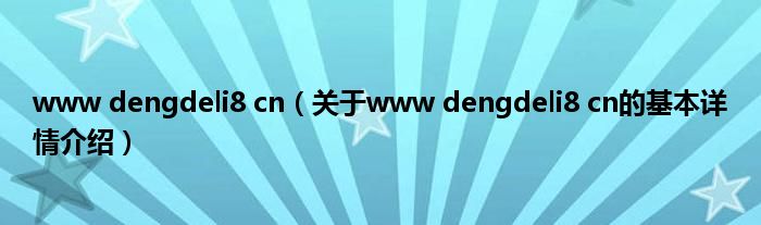 wwwdengdeli8cn(关于wwwdengdeli8cn的基本详情介绍)
