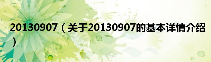 本文关于20130907的基本详情介绍就讲解完毕,希望对大家有所帮助。