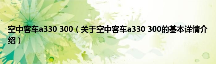 本文关于空中客车a330 300的基本详情介绍就讲解完毕,希望对大家有所帮助。