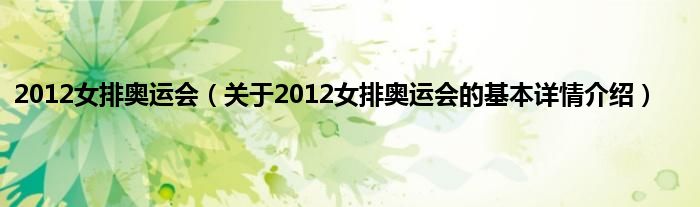 本文关于2012女排奥运会的基本详情介绍就讲解完毕,希望对大家有所帮助。