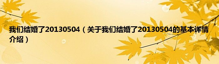 本文关于我们结婚了20130504的基本详情介绍就讲解完毕,希望对大家有所帮助。