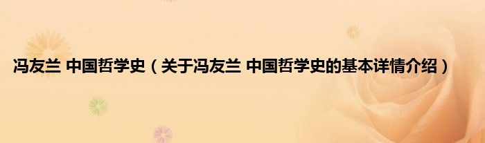 本文关于冯友兰 中国哲学史的基本详情介绍就讲解完毕,希望对大家有所帮助。