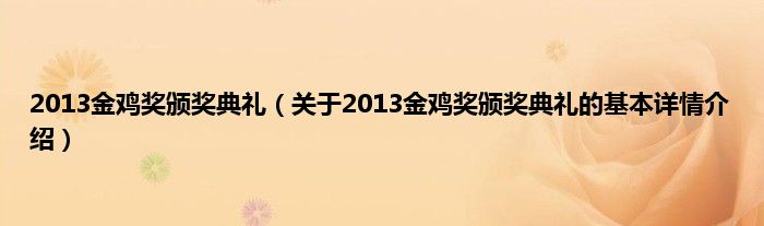 本文关于2013金鸡奖颁奖典礼的基本详情介绍就讲解完毕,希望对大家有所帮助。
