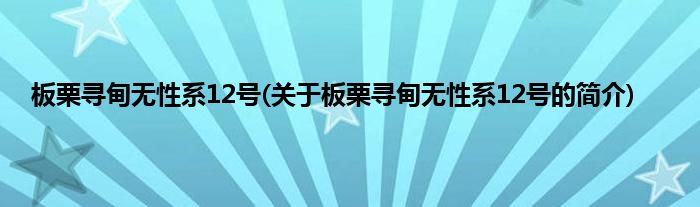 本文关于板栗寻甸无性系12号的简介就讲解完毕,希望对大家有所帮助。
