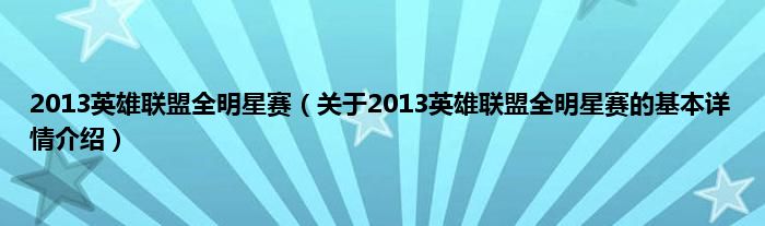 本文关于2013英雄联盟全明星赛的基本详情介绍就讲解完毕,希望对大家有所帮助。