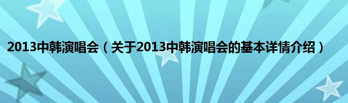 本文关于2013中韩演唱会的基本详情介绍就讲解完毕,希望对大家有所帮助。